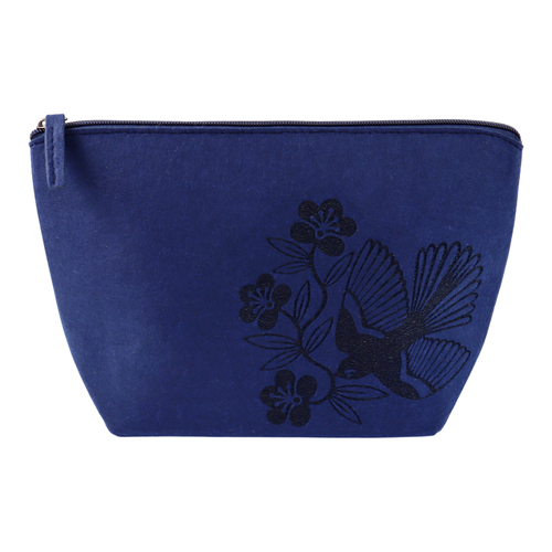 An accessory bag with a printed New Zealand Fantail Bird design.