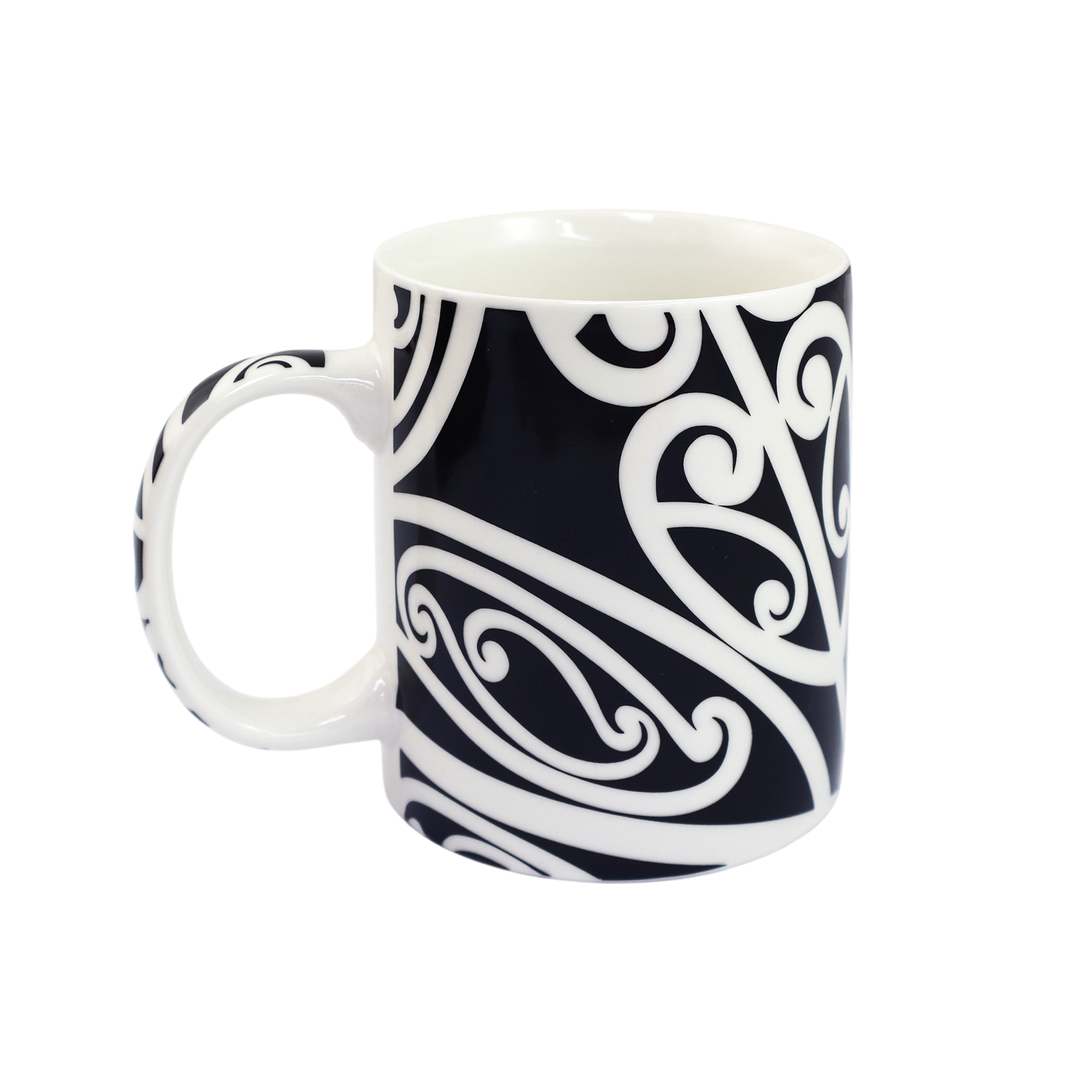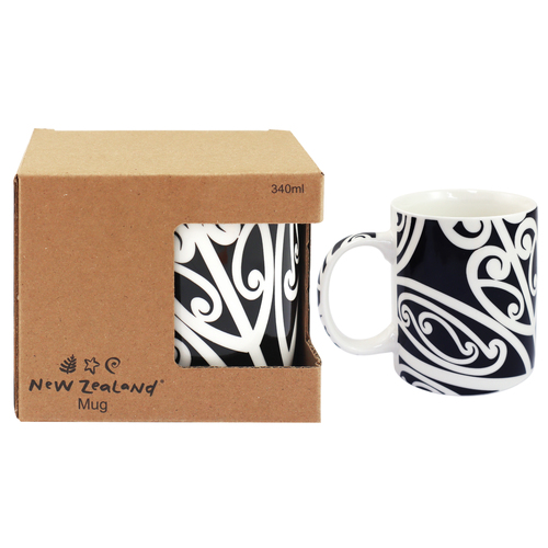 Celebrate Aotearoa with every sip. Crafted from fine new bone china, these mugs feature a traditional black and white Māori pattern. Designed in New Zealand by Māori illustrator Ivan Tuari.