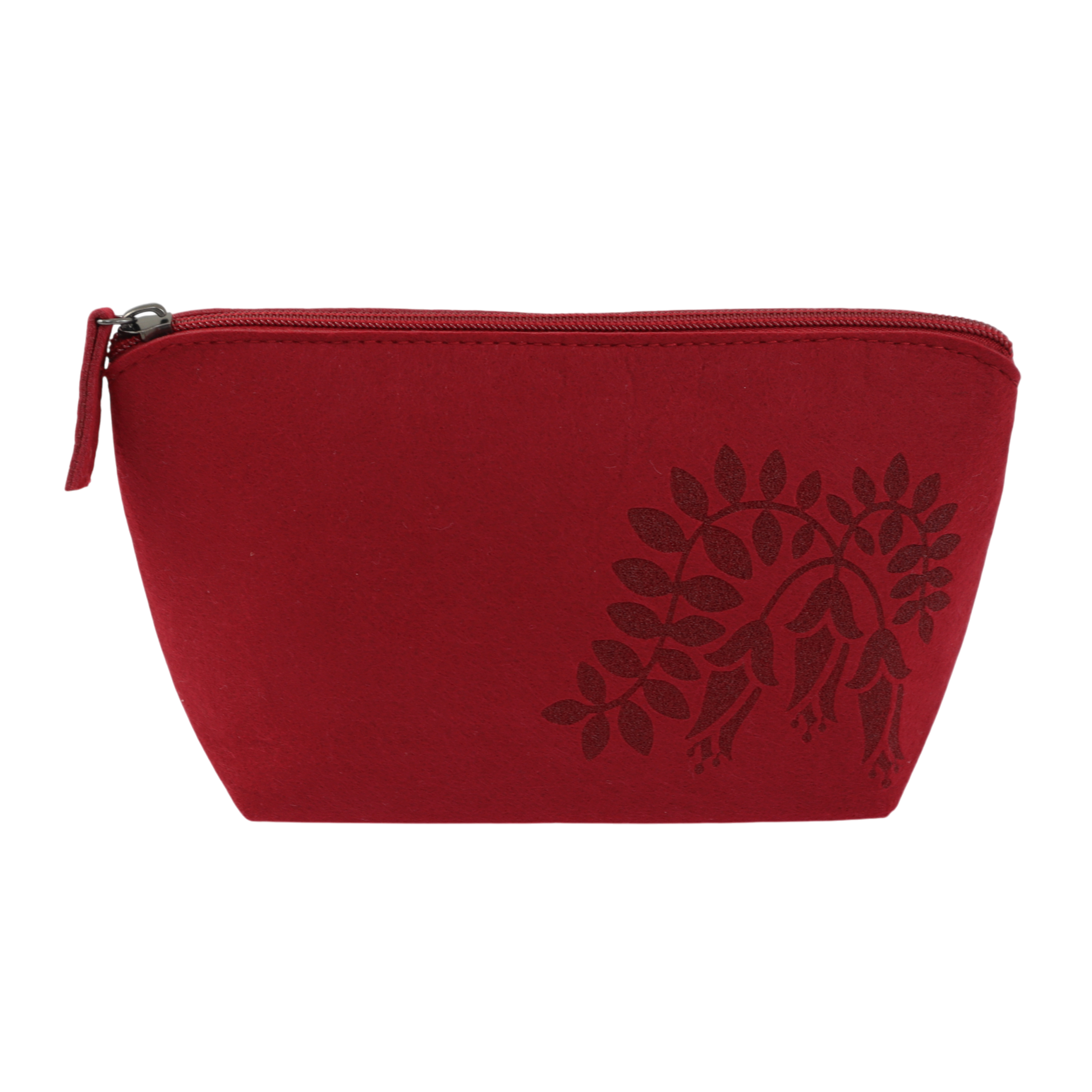 A cosmetic bag with a printed New Zealand Kōwhai Flower design.
