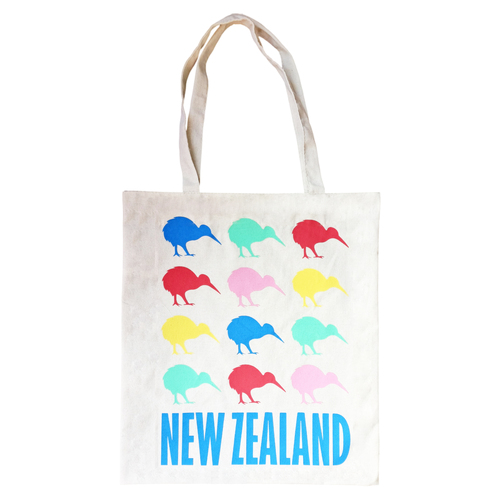 A cotton tote bag with a colourful kiwi bird design. Add a touch of kiwiana to your everyday with this handy tote bag, perfect for shopping.
